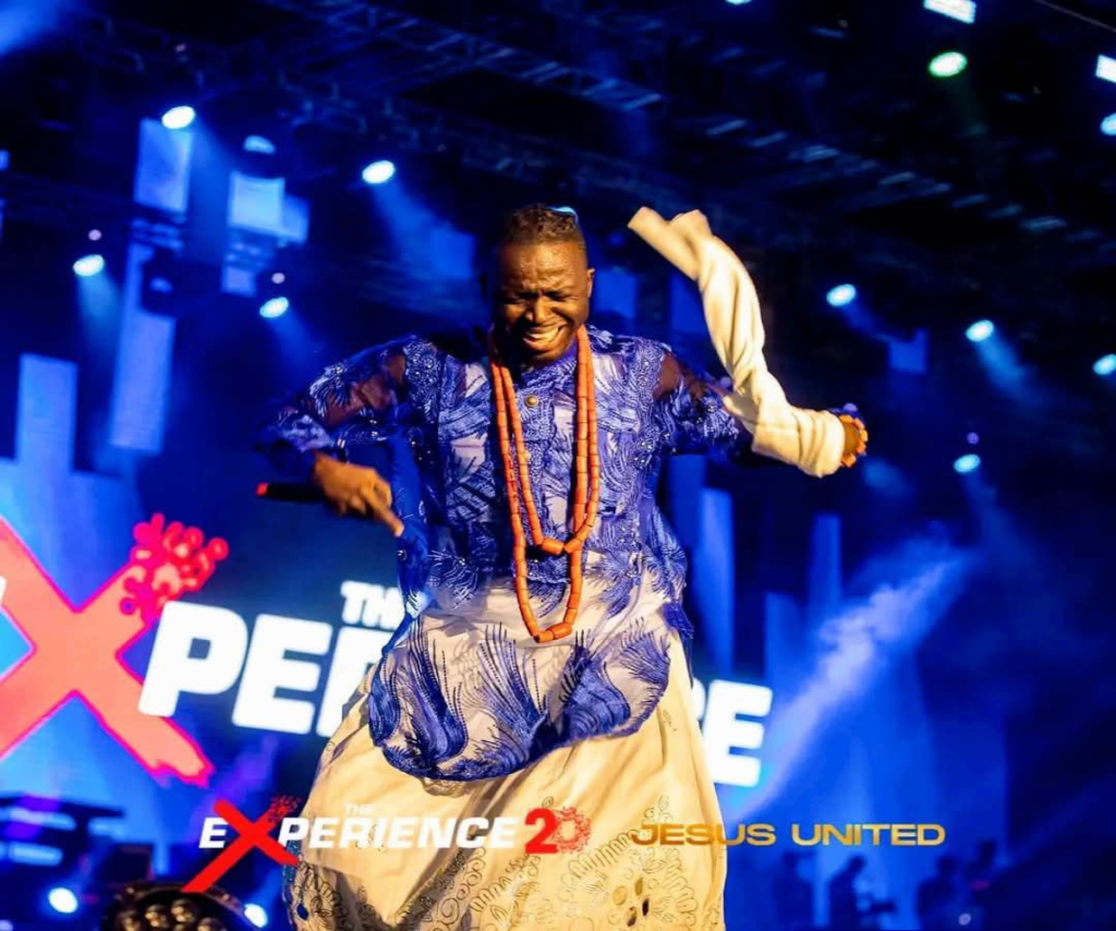 What Comedian Akpororo did at the Experience event to tell the host, Pastor Paul Adefarasin that I have moved my career from comedy to singing professionally. Akpororo sings and dances in his local church as a choir member.
