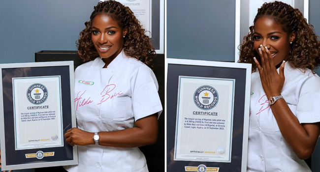 Hilda revealed the news on social media, updating her online profile to reflect her new status as “Chef X3 Guinness World Record Holder.” The confirmation came from Guinness World Records after officials reviewed her record attempt and found she had broken two separate records on the same day during her jollof rice cookout last year.
